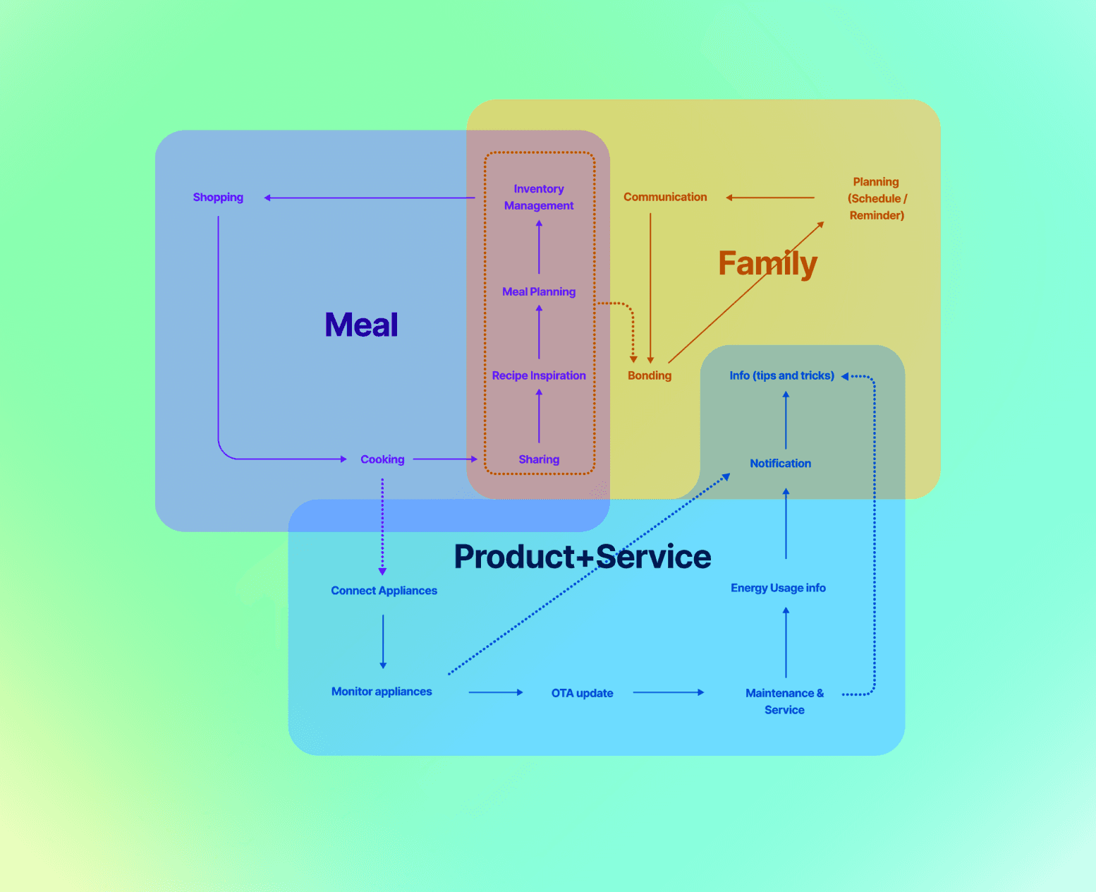 Developing new products and services based on in-home research, user testing, and marketing and engineering insights with a focus on Kitchen-centered activities, Online shopping, and energy management.